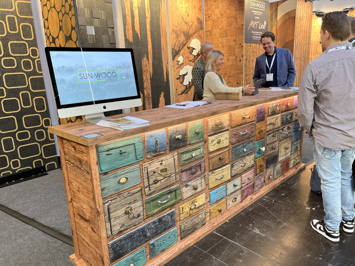 návštěvníky také vizuálně. Sofistikovaná konstrukce stánků o výšce až tří