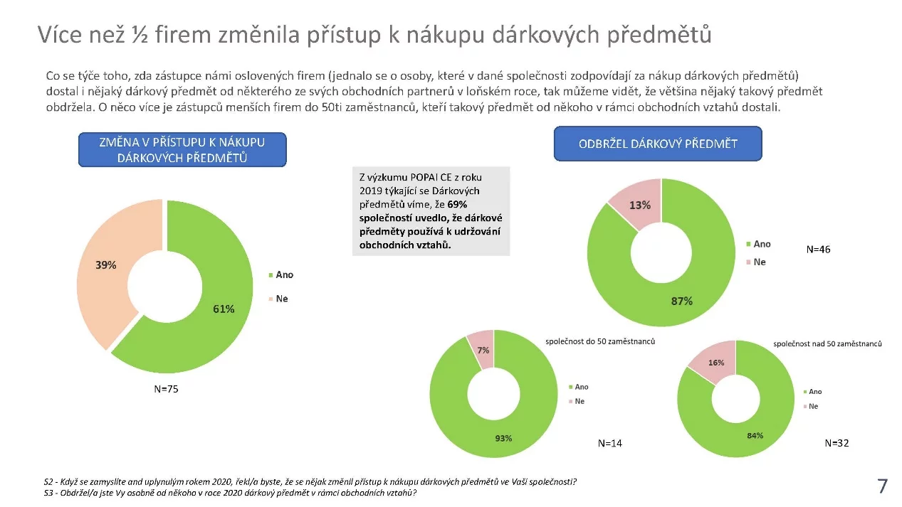 Situace ve společnosti, kdy v důsledku pandemické krize byly omezeny přímé kontakty a setkávání, ještě více zdůraznila význam dárků při budování obchodních vztahů, které jsou projevem pozornosti a úcty vůči obchodnímu partnerovi. To ukázaly i výsledky výzkumu, kdy 87 % respondentů uvedlo, že v roce 2020 obdrželo v rámci upevňování obchodních vztahů dárkový předmět.