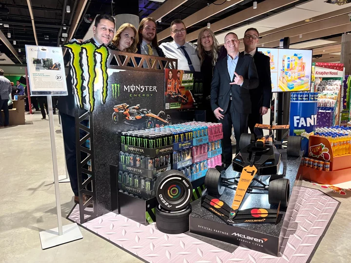 Nealkoholické nápoje. Atraktivní expozice, zasazená do světa motorsportu,