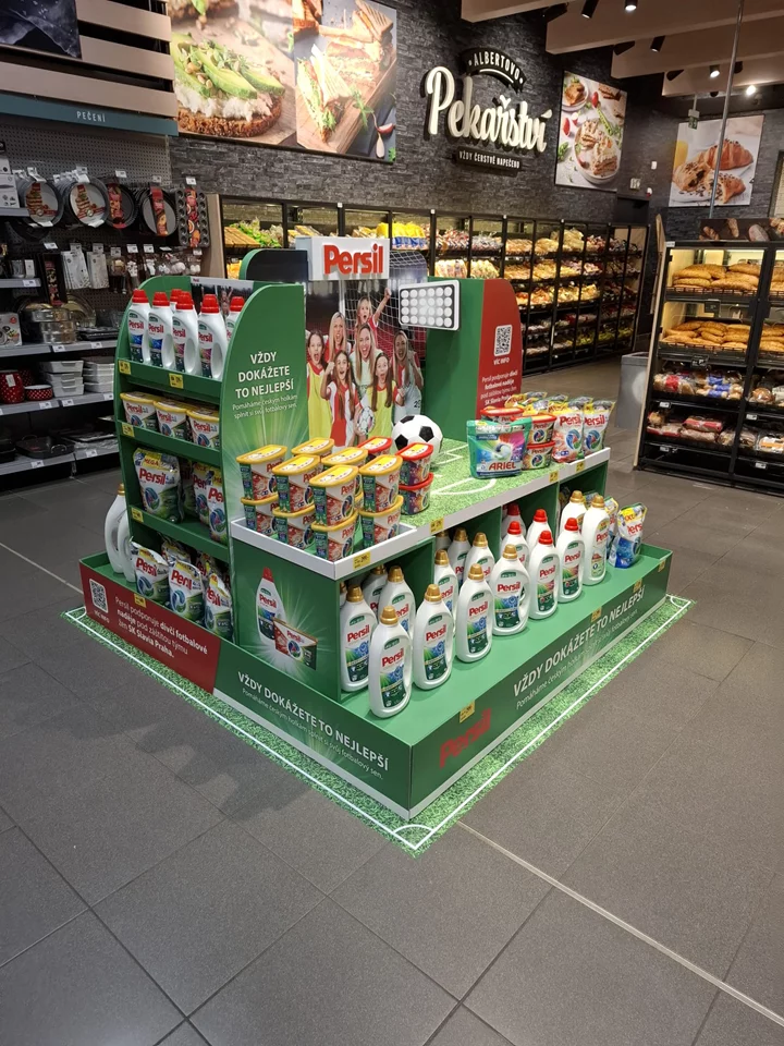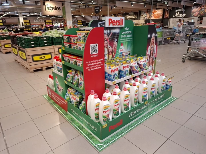 Kampaň „Vždy dokážete to nejlepší!“ na podporu talentovaných fotbalistek probíhala v průběhu celého května a června a je logické, že značka chtěla tuto CRS aktivitu komunikovat i v prostoru hypermarketů, kde se nákupní rozhodnutí odehrávají. „Stáli jsme před úkolem, jak v rámci jednoho vystavení skloubit prezentaci celého portfolia produktů značky Persil s upozorněním na probíhající CSR aktivitu,“ říká ředitelka přední instorové agentury POS Media, Dana Běloušková s tím, že kreativní oddělení hledalo řešení, které na první pohled zaujme a přitáhne pozornost zákazníků.